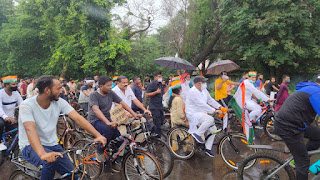 देश में लगातार बढ़ती जा रही महंगाई केंद्र सरकार के खिलाफ, विपक्ष में बैठी कांग्रेस के लिए बड़ा मुद्दा है और इस मुद्दे के साथ कांग्रेस आम लोगों को अपनी तरफ आकर्षित करने अपने साथ जोड़ने के लिए कोई कसर नहीं छोड़ रही है।शहर में आज सुबह से कहीं कहीं बारिश हो रही थी इसके बावजूद कांग्रेस के द्वारा आयोजित साइकिल रैली में वरिष्ठ नेताओं के नेतृत्व में भारी भीड़ जुटी थी।