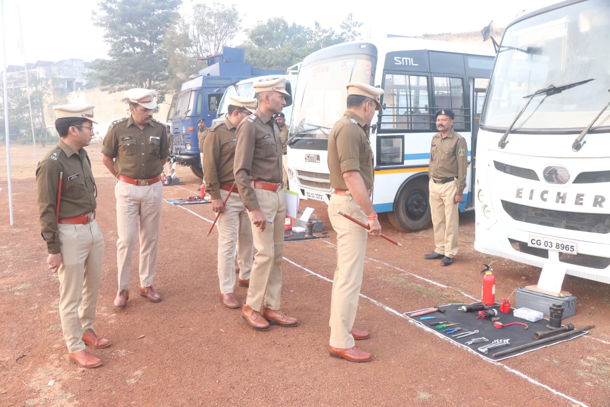 रक्षित केन्द्र, दुर्ग में परेड कमांडर नीलकंठ वर्मा, रक्षित निरीक्षक, दुर्ग एवं परेड टू-आई-सी-उप निरीक्षक पुरूषोत्तम कुर्रे, चौकी प्रभारी जेवरा सिरसा द्वारा जनरल परेड का नेतृत्व किया गया। जनरल परेड की सलामी पुलिस अधीक्षक, दुर्ग जितेन्द्र शुक्ला, भापुसे. द्वारा ली गई, उसके पश्चात् परेड में सम्मिलित अधिकारी/कर्मचारियों के वेशभूषा का निरीक्षण किया गया, उत्तम वेशभूषा धारण करने वाले अधिकारी/कर्मचारियों को पुरस्कृत किया गया। पुलिस अधीक्षक, दुर्ग द्वारा सभी अधिकारी/कर्मचारियों से कहा गया कि सभी निर्धारित वेशभूषा ही धारण करें एवं वर्दी पहनने से आत्म सम्मान में वृद्वि होती है, जनता में अच्छी वेशभूषा धारण करने से पुलिस की छबि अच्छी बनती है। आप ड्यूटी में व्यस्तता के बावजूद अच्छी वेशभूषा धारण करना सुनिश्चित करें। पुलिस अधीक्षक महोदय, दुर्ग द्वारा श्वान दलों का निरीक्षण किया गया एवं शासकीय वाहनों का निरीक्षण किया गया जिसमें कानून व्यवस्था स्थापित करने में उपयोगी भारी वाहनों के रख-रखाओं का जायजा लिया जाकर वाहनों को अच्छी कंडीशन में रखने की हिदायत दी गई। तत्पश्चात् पुलिस अधीक्षक, दुर्ग द्वारा रक्षित केन्द्र, दुर्ग स्थित आर्म्स शाखा का निरीक्षण किया गया एवं आर्म्स-एमूनेशन के रख-रखाव एवं सुरक्षा के प्रति सजग एवं सतर्क रहने हेतु निर्देशित किया गया। इसके पश्चात् रक्षित केन्द्र, दुर्ग के गणवेश शाखा, वाहन शाखा कार्यालय, पुलिस साख सहकारी समिति, रोजनामचा शाखा, रीडर शाखा एवं कैश शाखा का निरीक्षण किया गया । रक्षित निरीक्षक कार्यालय में पुलिस अधीक्षक, दुर्ग द्वारा कर्मचारियों की अर्दली रूम पेशी ली गई एवं उनकी गुजारिश सुनकर उनके द्वारा प्रस्तुत समस्याओं का निराकरण किया गया। इस दौरान जिले में पदस्थ सुखनंदन राठौर अतिरिक्त पुलिस अधीक्षक (शहर ) सत्यप्रकाश तिवारी, नगर पुलिस अधीक्षक, दुर्ग, राहुल बंसल, परि.भापुसे. एवं नीलकंठ वर्मा, रक्षित निरीक्षक, जिला-दुर्ग एवं समस्त अधिकारी/कर्मचारी उपस्थित थे।
